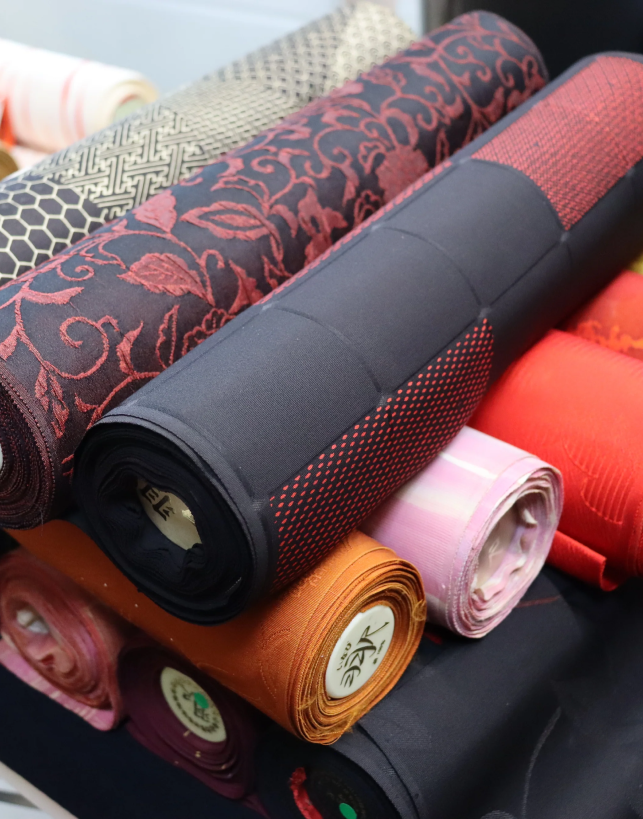 ここは京都にある、紀平さんの工房です。私たちが使用する着物地を、伝統的な方法で丁寧に洗浄していただき、その素材を最大限に保護・保存してもらっています。当ブランドでは、デッドストックの着物生地を使用しているため、製品化する前に注意して取り扱わなければなりません。